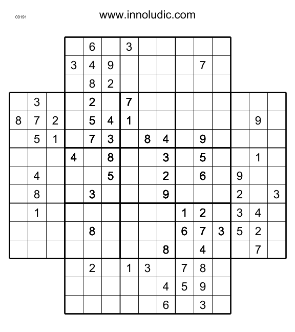 Among all the different possible Sudoku puzzle configurations, Sumo reigns supreme. It contains 13 interlocking Sudoku puzzles, which is enough to gauge its difficulty. Don't give up before you've tried it. Patience and foresight are qualities that you possess and that are needed to solve this monster.