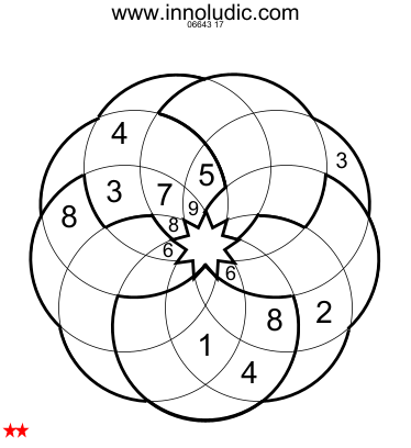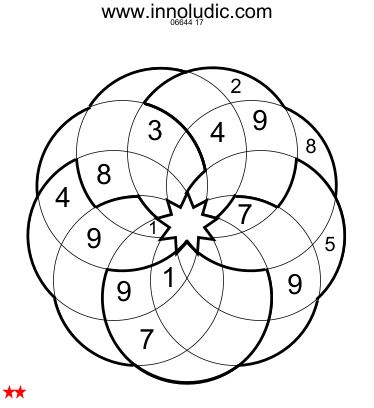 Despite appearances, this curved grid is indeed a Sudoku puzzle. You must enter the numbers 1 through 9 in each curved row. However, there are 5 regions outlined by a dark line, and 9 curved lines that start at the center and end, following the arc, at another part of the center. So, each cell is part of two rows. In short, we have our Sudoku. At first, the curves may confuse those used to the good old square Sudoku, but they quickly encourage you to think differently. Here are three grids.