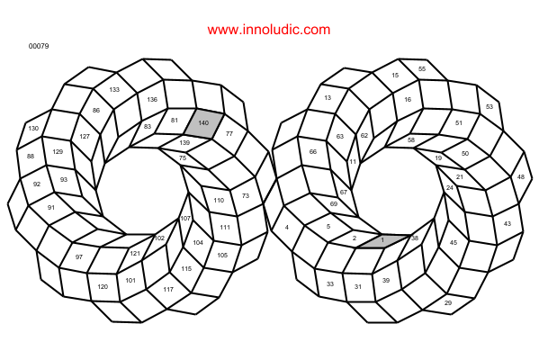 Recently, I revisited hidokus. Those who visit my site know that I have created several variations of this puzzles. Being able to modify the shape of the grids and also the boxes gives the puzzle creator a lot of freedom. So here is a new version based on the theme of twisted circles (at least, that's what I call them now). The one I'm presenting to you is a union of two circles. As in any hidoku, you have to connect the gray boxes by jumping from box to box to make a path. Just number each empty box along the path. Now it's your turn to play.