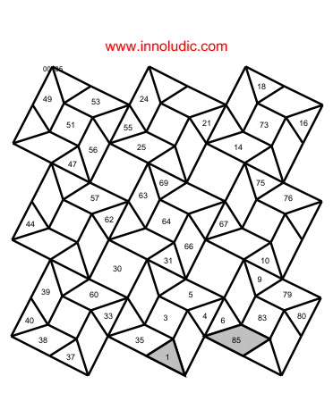 In the form presented here, the cellsare either square, triangular, or diamond-shaped. You will also notice that they are not all the same size. So, starting from square 1 and ending at the last square on the path: 85, try to find this path. You can move from one cell to another if one corner of a cell touches another. Think outside the box and have fun.