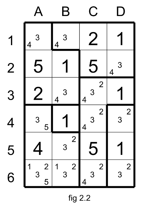 From the Suguru at the figure 2.1 with the basic technics we arrive at this situation (fig 2.2).