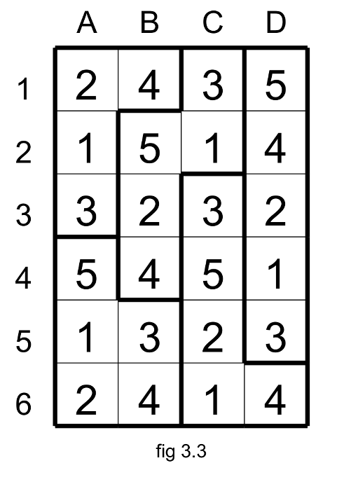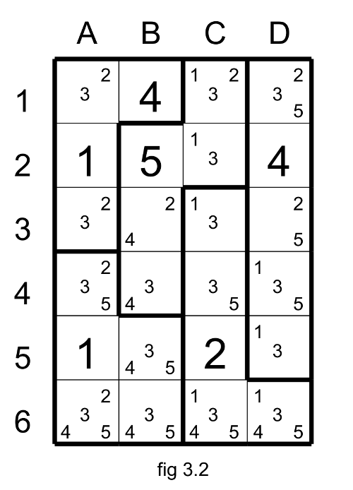 From the Suguru at the figure 3.1 with the basic technics we arrive at this situation (fig 3.2).
