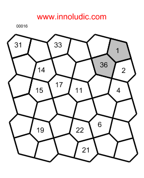 Again, I presented you a new variation of the Hidoku puzzle. For this new variation, all the cells are pentagons (5 side polygon). This means that a cell in a center could reach 7 others cells. (its is 8 for a square cell and 6 for an hexagon cell). Also using pentagon creates an interesting pattern called Cairo pentagonal tiling. As usual, the rules of Hidoku applies (Hidoku's Rules ). You have to trace a path from the first cell (number 1) up to the last cell (the other grey cell) passing cell by cell to all the cells of the grid. The numbers in the cells indicate the order of the cell in the path. I present you three puzzles with different sizes for you pleasure.