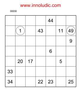 After having presented you exotic Hidoku puzzle, I believe that is the time to present you two classic Hidoku puzzles ( Hidoku's Rules ). The goal is simple: trace a path passing in each cell, step by step. The path starts from the cell mith the number one and finishs at the other cell with with a circle. You move from one cell to another adjacent cell (horizontaly, verticaly or diagnaly). To help you, some cells have already the step's number of the path.