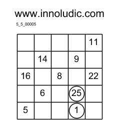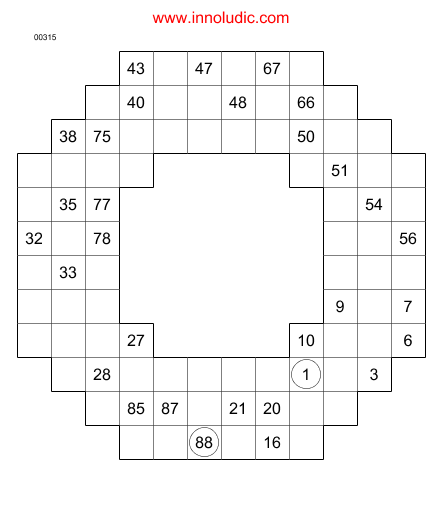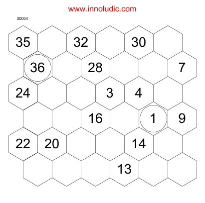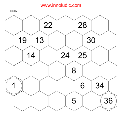 I present you three different variations. Remember you have to make a path from the circle cell having the number 1 up to the last cell (inside a circle) by hoping one cell by cell (horizontaly, verticaly or diagonaly).