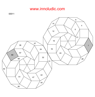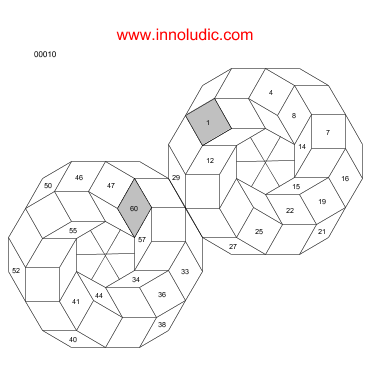 Here are two Hidoku with unusual shapes. They consist of two grids (doughnut-shaped) placed side by side. In each case, you have to write the path from cell 1 to the last with 60. Don't forget that the lines in the center of the doughnuts allow you to jump through the hole to the two connected cells.
