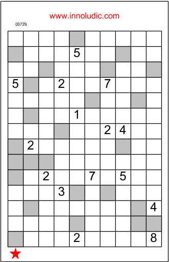 I present you this week the Yakazu puzzle. This is one of the new puzzles I have added to my bow this year. It's a logic puzzle that's part Sudoku, part Kakuro and part crossword. In a grid shaped like a crossword puzzle, you have to enter numbers (instead of words). The numbers you have to enter depend on the size of the available space (the sequence of white squares I call an entry). So, for an entry of size 5, you'd have to enter numbers from 1 to 5, and for an entry of size 6, numbers from 1 to 6, etc.. The problem is that very often a cell belong to vertical entry and a horizontal entry, each of which has a different size. For this cell (the one common to both entries), the size of the minimum entry must be adopted. Ex a cell is part of an vertical entry of size 2 and a horizontal entry of size 6 then this cell could have only one or two. Finally, this rule doesn't apply to entries of one cell only, in which case we take the limit of the other entry that crosses this cell. See the rules link below, where everything is explained, with examples of how to solve it.