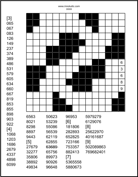 For summer I do not know a better entertainment than doing Number Fills-in puzzle, this is relax, in harmony with the season. So I present you a Number Fill-ins puzzle. Place all the numbers in list to the grid. Concentration and patience are required !