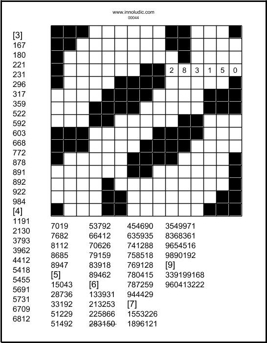 Number Fill-ins 15x15n 44