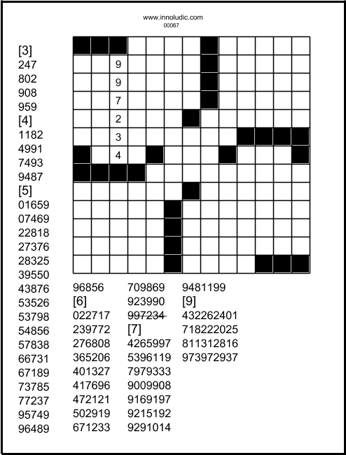 I have just published a book about a new kind of puzzle : Number Fill-Ins . This puzzle is relatively easy the goal is to fill a grid with a list of numbers. Although this puzzle requires logic to be solved, a good sense of observation is an asset. It could happen for many of us that sometime we want to take a break from the roller coaster puzzles like Kakuro, Super Sudoku, etc.., and we just want to have a quiet challenge . So the Number Fill-ins puzzle is perfect for these moments.