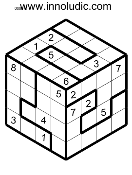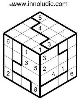 A Sudoku is a fascinating puzzle, but the twist added when the puzzle becomes a Sudoku 3D (Rules of Sudoku 3D) increases the challenge. We are outside our comfort zone, our discomfort is due to the fact that the row and column span on two faces. This feeling could be accrued when the regions are irregular. This week I present you two Sudoku 3D with irregular regions.