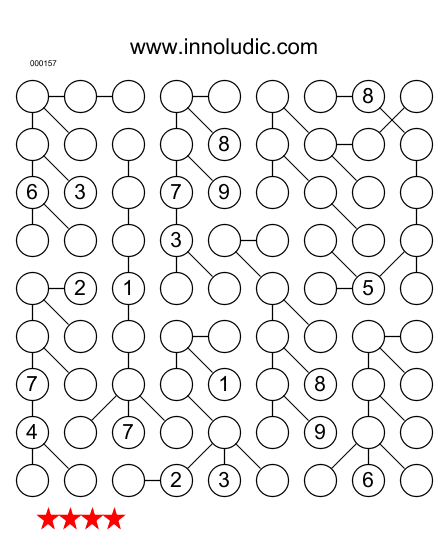 This week I provide you with three Chain Sudoku puzzles ( Rules of Sudoku Chain), The first one is a piece of cake (use numbers 1 to 5) but the last two are little bit more challenging (use numbers 1 to 9).