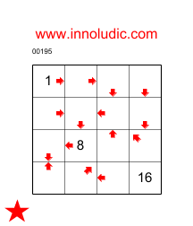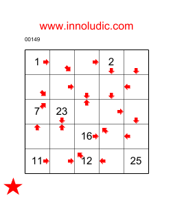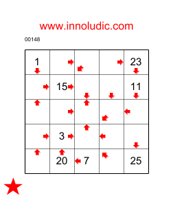 Here is a puzzle that requires deduction and observation: the Arrows Maze. In a square grid, starting from the first cell numbered 1 (top left), you must move through all the cells to the last cell at the bottom right (either 16 or 25 depending on the size of the grid). You move from one cell to another by jumping one or more cells in any of the eight possible directions. Each cell indicates the direction of the next cell to reach. Obviously, the numbers in the cell indicate their rank in the path. It's up to you to find the rank of each empty square. Sharpen your brain!