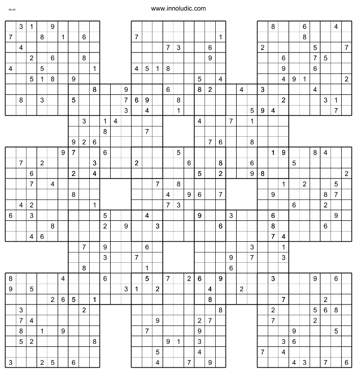 If you are tired to do alway the same thing, if you want to relax and change your mind. Stop ! I have the cure for your problems. First of all print this puzzle: it is a Sumo (an amalgation of 13 sudokus). Second find a quiet place, preferably under a tree or on a beach. Finaly take a pen and try to resolve this puzzle. You will be in another world. So dont wait.