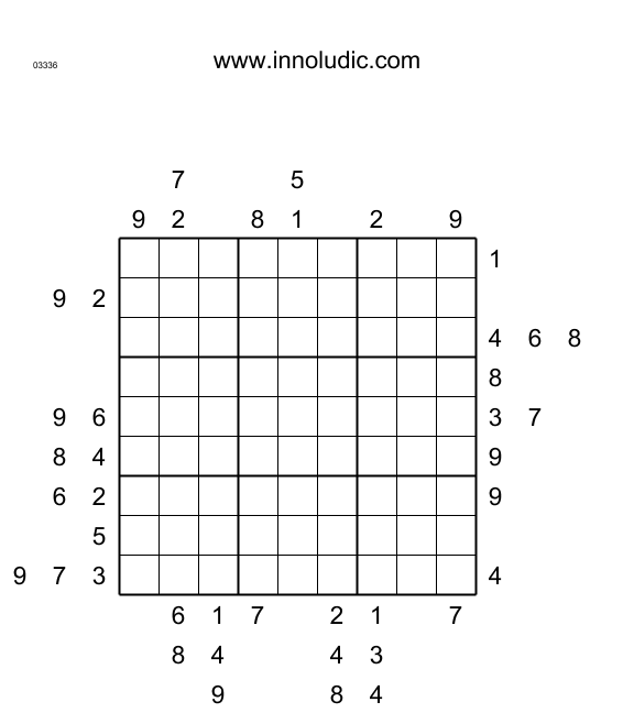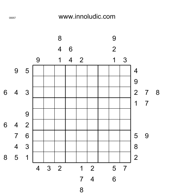 This week I'm bringing you two Outside Sudoku puzzles. The grid contains no clues. These are located outside the grid. The numbers opposite each column and row indicate their appearance in the first three squares of those rows or columns. This is enough to complete the game according to the usual Sudoku rules. Enjoy.