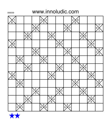 Here is the Sudoku Limit: you have to enter numbers from 1 to 9 in each row and column. Each row and column has three bounds cells ( cells with numbers in the X). The numbers in these bounds indicate in which direction the numbers in question are placed: to the left, right, top or bottom of the bound, depending on where they are located in the X. The numbers indicated are placed between this limit and the next limit, or the edge if there is no bounds cell.