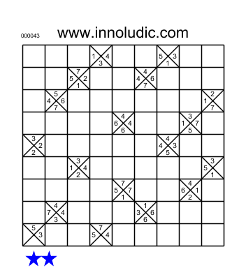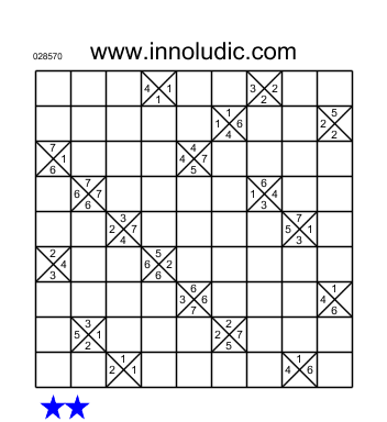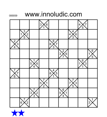 The Sudoku Limit puzzle (Rules of Sudoku Limits ) is another Suduku puzzle without givens. first you have to put numbers from 1 to 7 in each column and row. The clues are inside A box with a X, this box is called the limit (each puzzle has 2 limits in each column and row). A limit can have numbers in any one of the four directions (around the X), when an number appear in one direction it means that this number must be in the next free cells in that direction up to the next limit or edge.