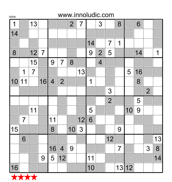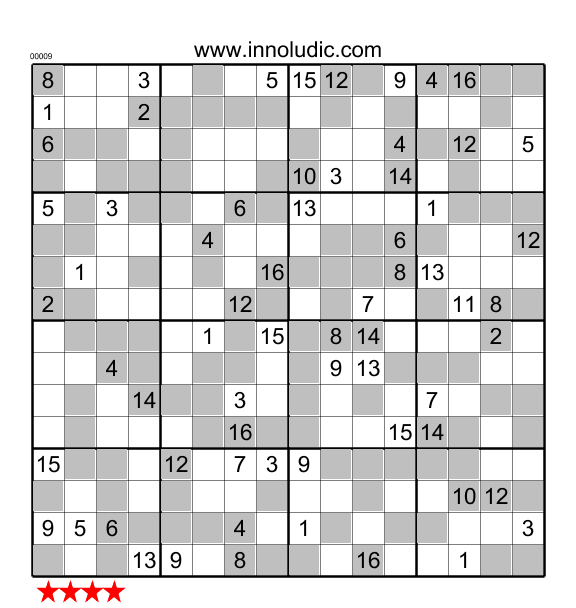 Here are two Super Sudoku puzzles. Instead of being played on a 9x9 grid, the Super Sudoku uses a 16x16 grid. Then you have to use numbers from 1 to 16 and to handle 16 columns, rows and regions. The fun begins !